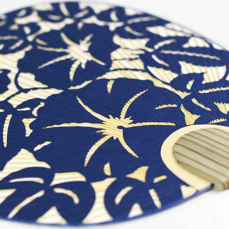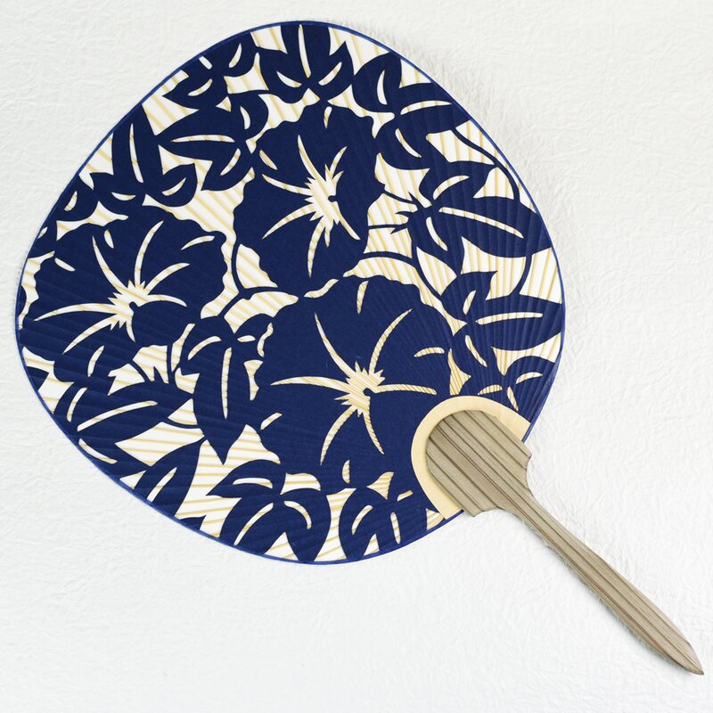 Blattfächer Uchiwa Asagao blau, 37,5 x 24 cm