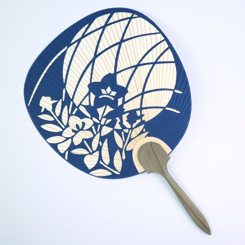 Blattfächer Uchiwa Kikyo blau, 37,5 x 24 cm