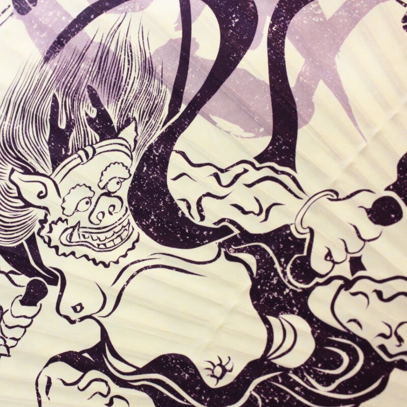 Blattfächer Uchiwa Raijin, beidseitig bedruckt