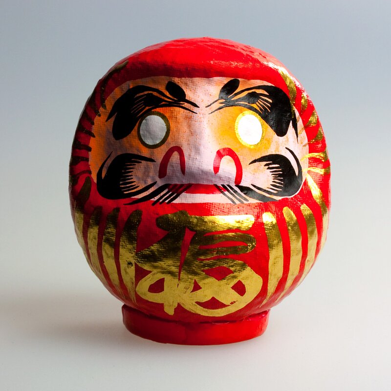 Der Daruma ist auch ein Stehaufmännchen"Nana korobi, hachi oki" = Siebenmal hinfallen und achtmal wieder aufstehen.