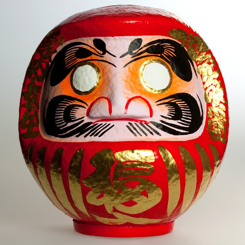 Der Daruma ist auch ein Stehaufmännchen"Nana korobi, hachi oki" = Siebenmal hinfallen und achtmal wieder aufstehen.