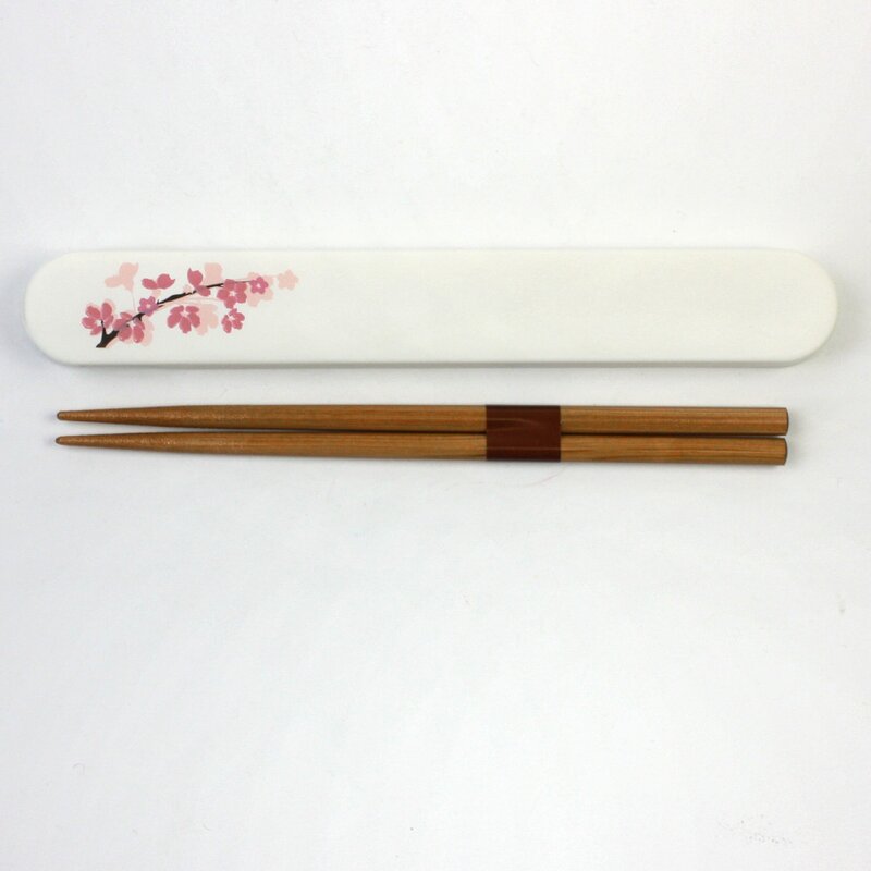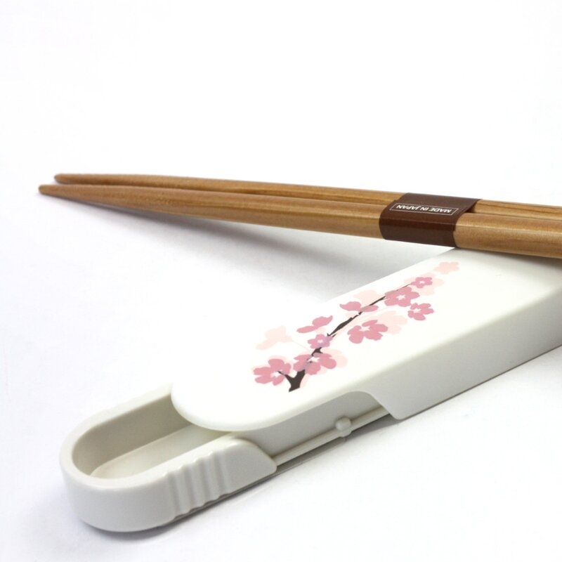 Essstäbchen mit Case Kirschblüte weiß, Stäbchen mit Transportbehälter