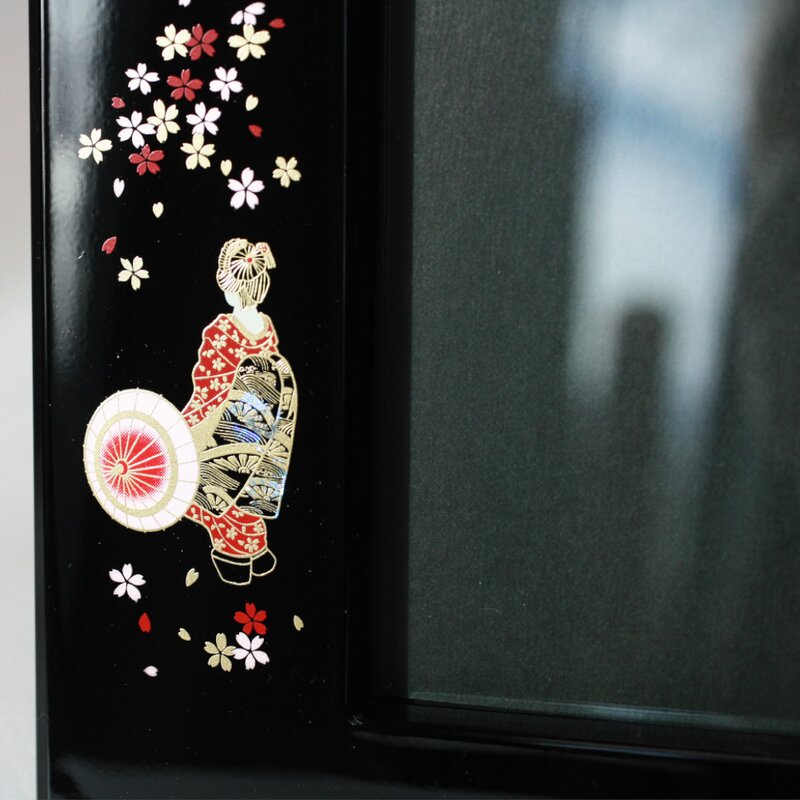 Fotorahmen mit Maikomotiv und Kirschblüten
