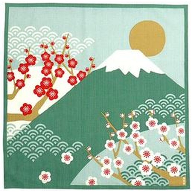 Furoshiki Grüner Fuji mit Pflaumenblüten 50 x 50 cm