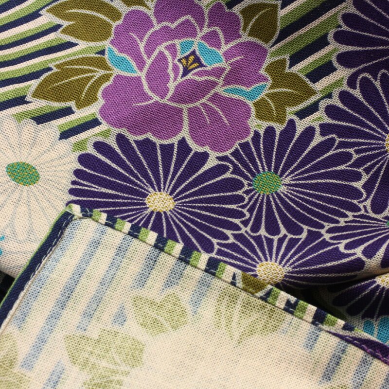 Furoshiki Retroflower blau-violett, 100 cm