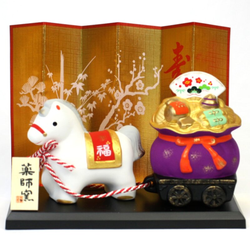 Jahrestierfigur 2026: Pferd mit Glücksbeutel