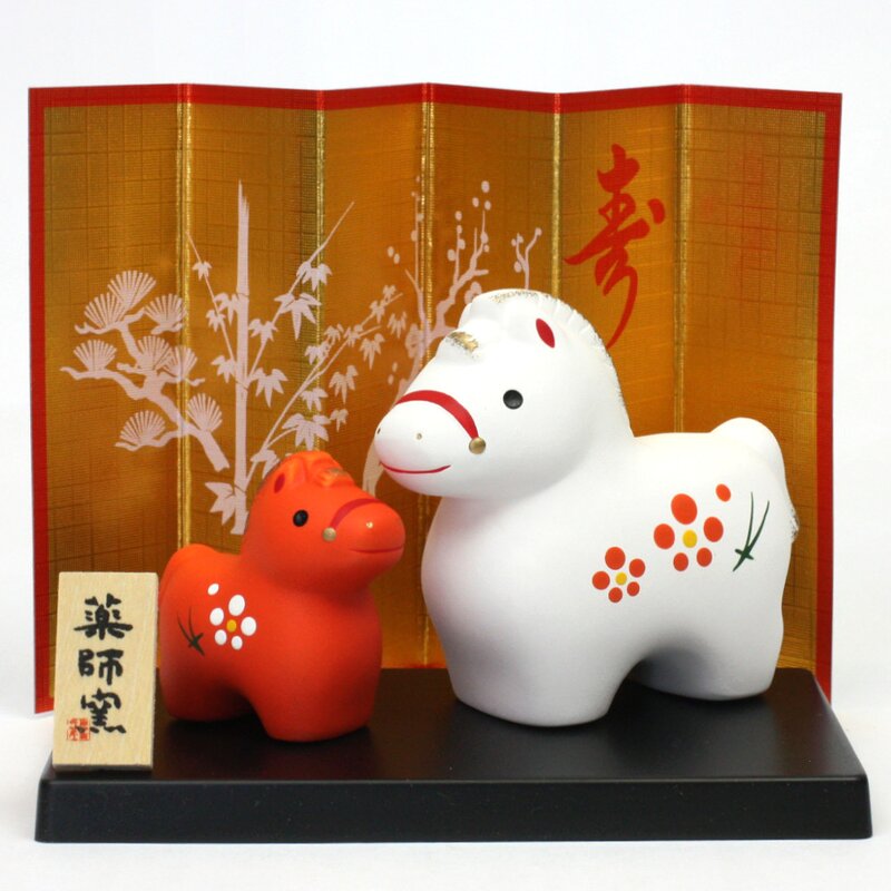Jahrestierfigur 2026: Pferde Oyako rot-weiß