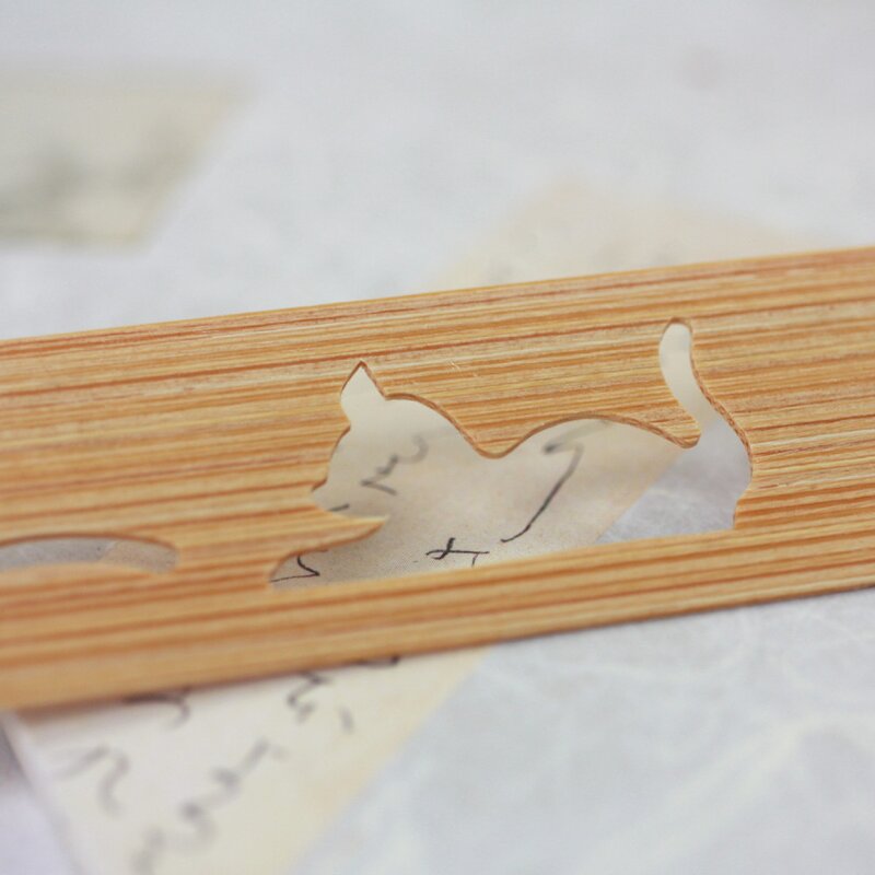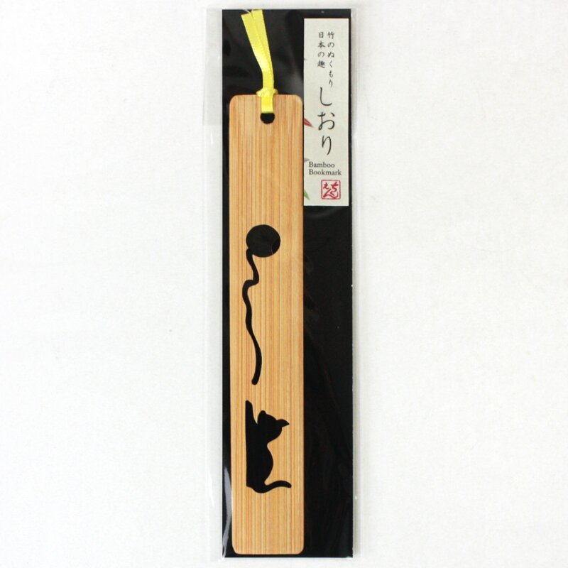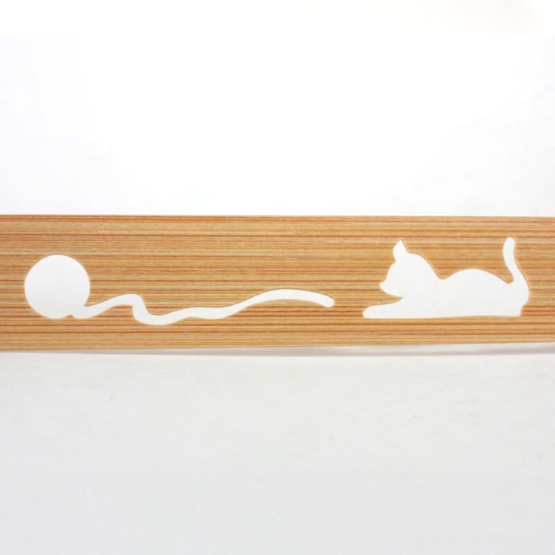Lesezeichen aus Bambus, Katze mit Wollknäuel