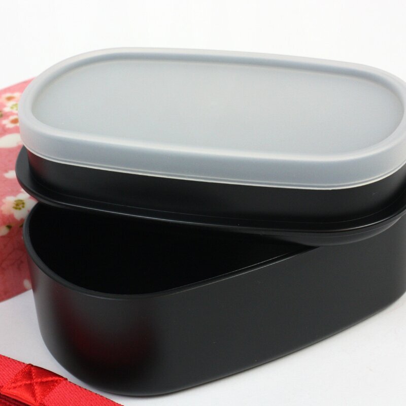 Ovale, zweistöckige Bentobox mit Kirschblüten & Häschen