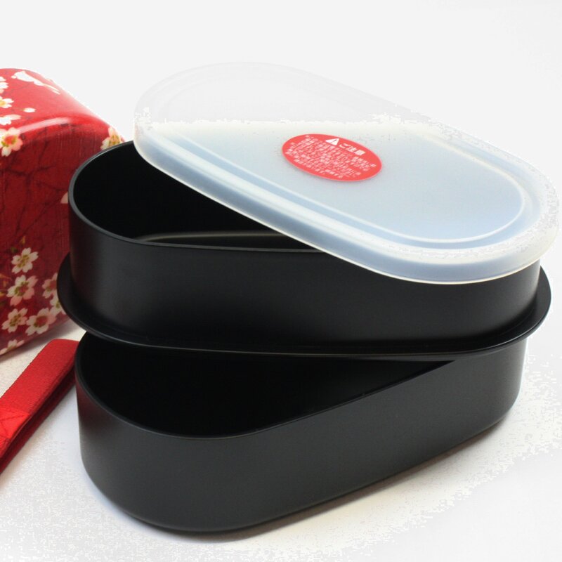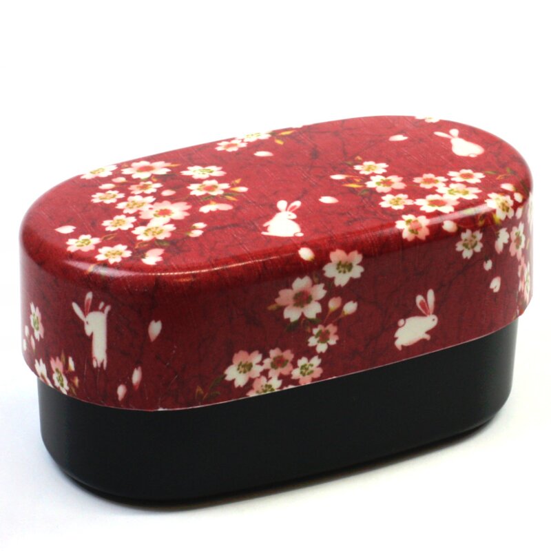 Ovale, zweistöckige Bentobox mit Kirschblüten und Häschen