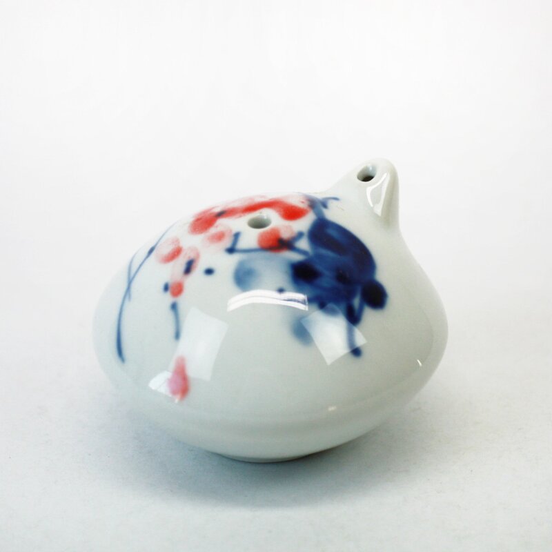 schön gestalteter Keramikbehälter der dazu dient, das Wasser zum Anreiben der Tusche tropfenweise zuzufügen