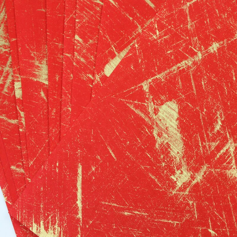 Kräftiger Bürstenstrich in Gold auf rotem Grund