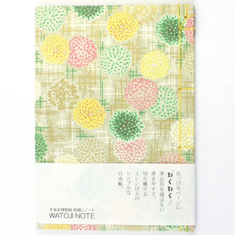 Notizbuch mit traditioneller Bindung 18 x13 cm, Chrysanthemen beige