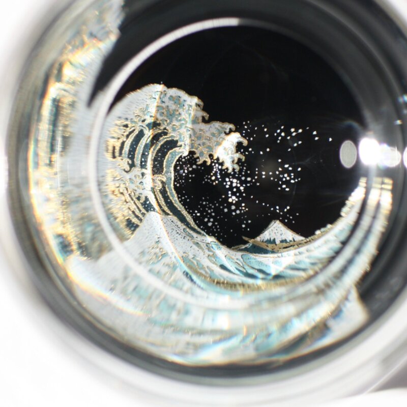 Auf dem Grund des Glases das klassische Hokusai-Motiv Welle