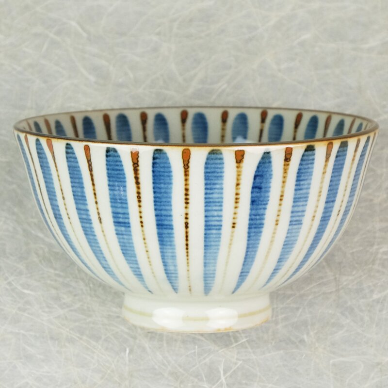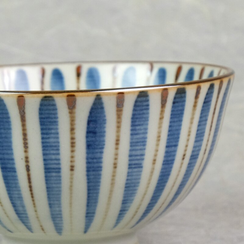 Reisschale mit Pinselstrich-Muster in blau und braun