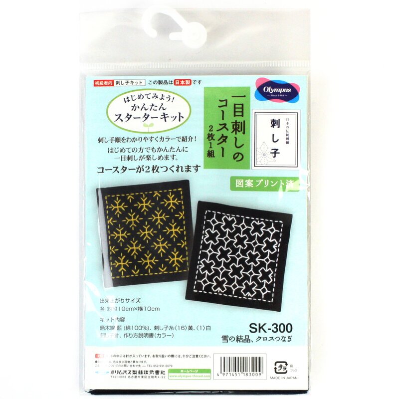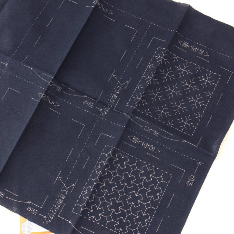 Sashiko Stickereiset, bestehend aus vorgedrucktem Stoff für 2 Untersetzer, Garn und Nadel