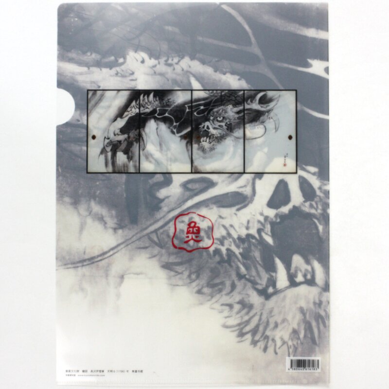 Rückseite: Kleines Motiv, das den 4teiligen Wandschirm mit dem Drachen zeigt