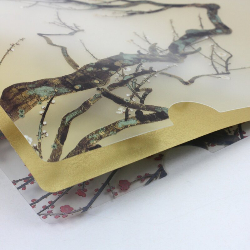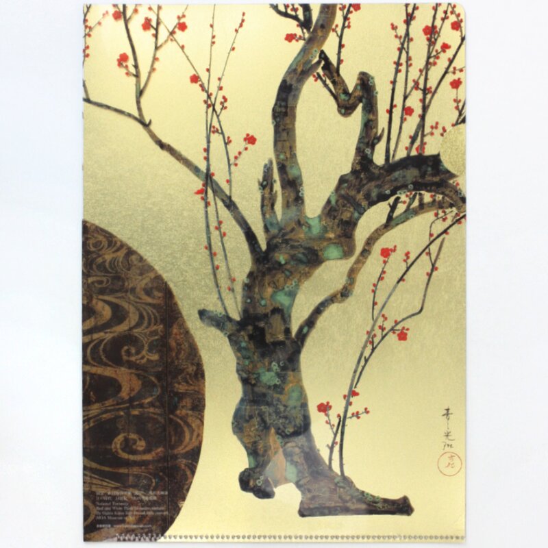 Sichtfolie A4 Rote & weiße Pflaumenblüte, mit Goldblatt