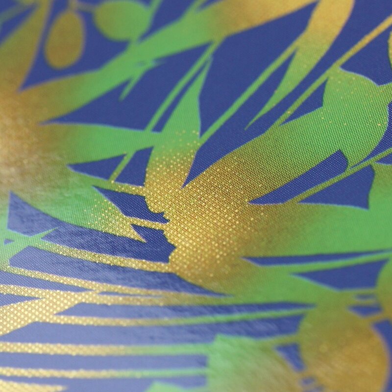 Motiv 1: stilisierte Chrysanthemen, Golddruck auf schwarzem Grund