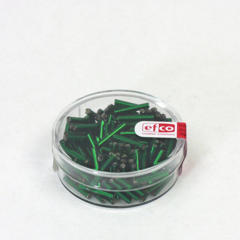 Stifttperlen 11 x 2 mm dunkelgrün, Silbereinzug, 13 g