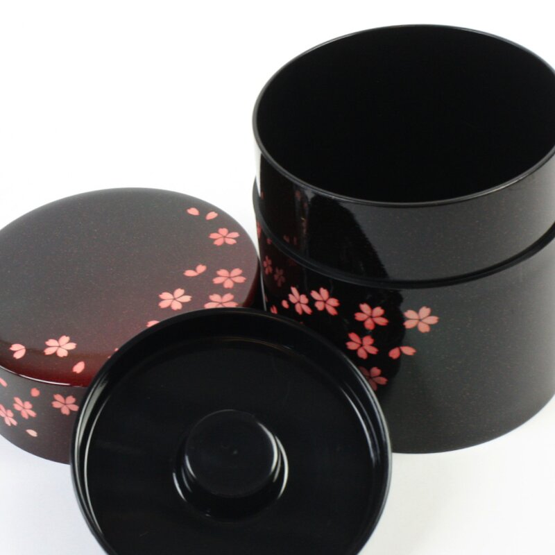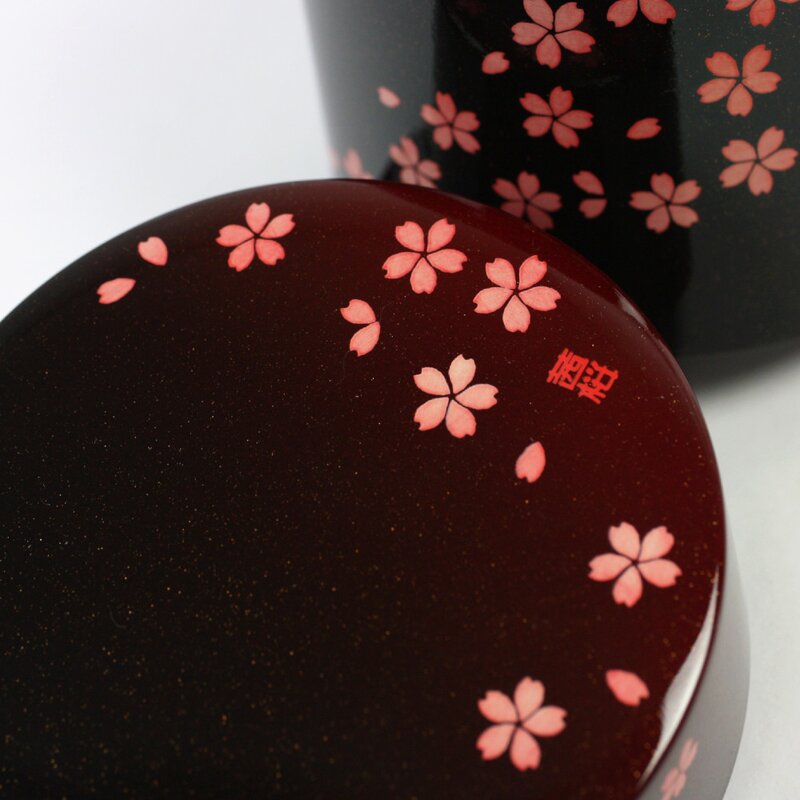Teedose im Lackcharakter mit Kirschblütenmuster