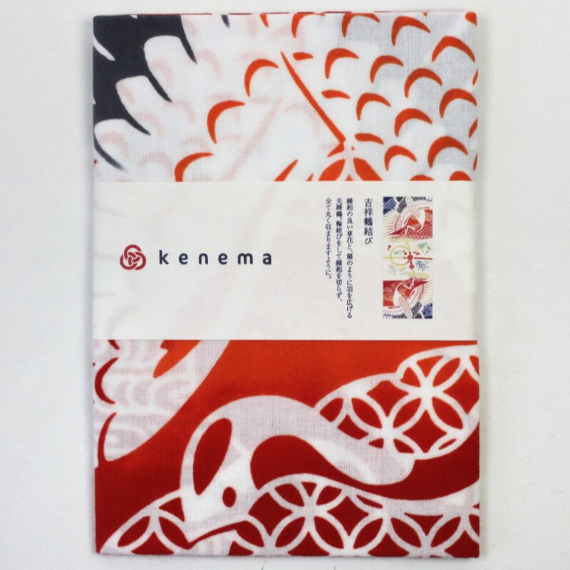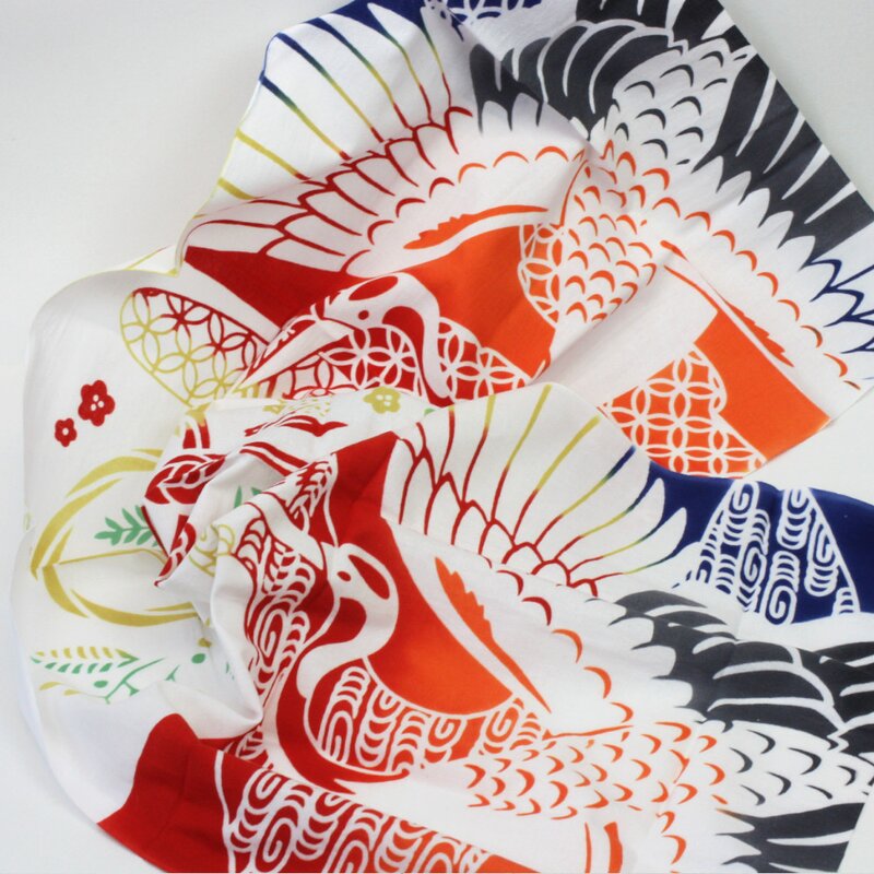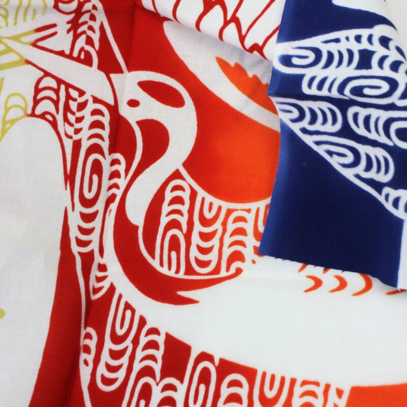 Tenugui mit zwei Kranichen und einer Noshi-Schleife in der Mitte (Querformat)