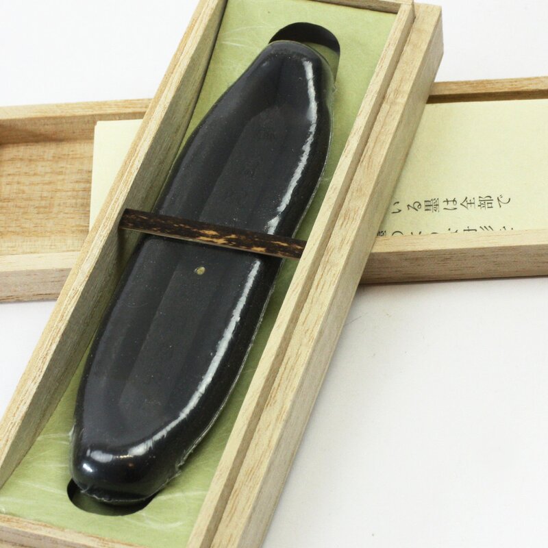 In Shosoin werden insgesamt 15 Tintenfässer als kaiserliche Schätze aufbewahrt, die alle die gleiche Bootsform aufweisen wie diese Tinte. Diese Tinten wurden aus dem Land Silla importiert, und man nimmt an, dass alle Tintenblocks damals diese Form hatten. Wir haben diese Formen, die an die Romantik der Antike erinnern, rekonstruiert.