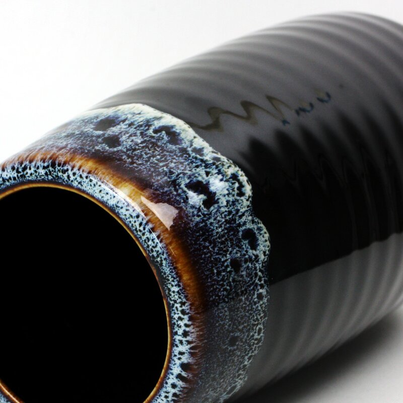 Tenmoku-Glasur mit dem typischen Rand einer weißgrauen, verlaufenden Glasur